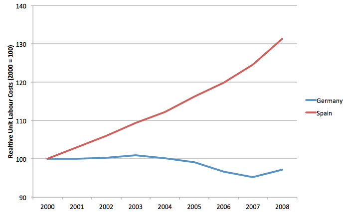 And this is how relative Spanish and German labour costs changed throughout this period: