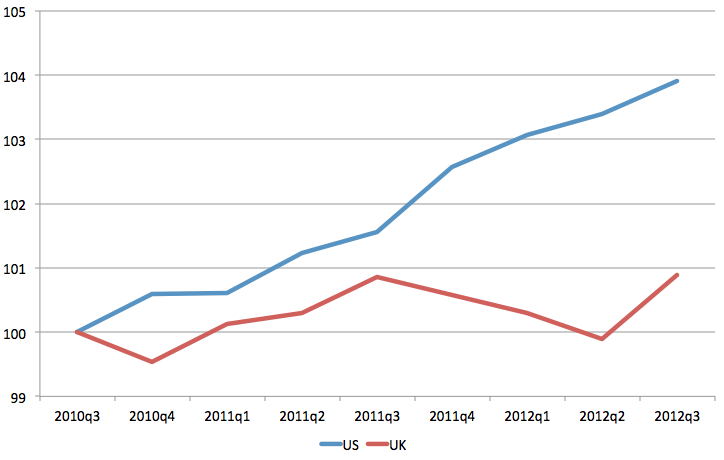 Here’s a graph showing how the US and UK economies have grown over the past four years: